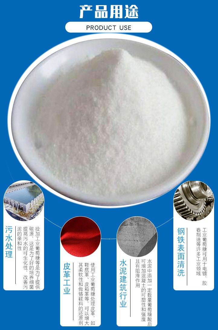 4、工業(yè)葡萄糖可以作水泥摻合劑:水泥中添加一定數(shù)量葡萄糖酸后,可增加混凝土的可塑性和強(qiáng)度,且有阻滯作用也就是將混凝土的可塑時(shí)間從幾小時(shí)延長(zhǎng)至幾天,而不影響其牢度。